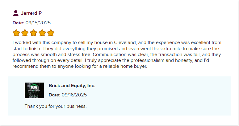Almost everyone knows several local real estate agents but selling your Cleveland Ohio house to a direct cash buyer you can trust like Brick & Equity, Inc. may be a new concept for most. See how we’ve helped other local property owners sell with confidence, for a fair price, on your own schedule without traditional real estate hassles and fees.